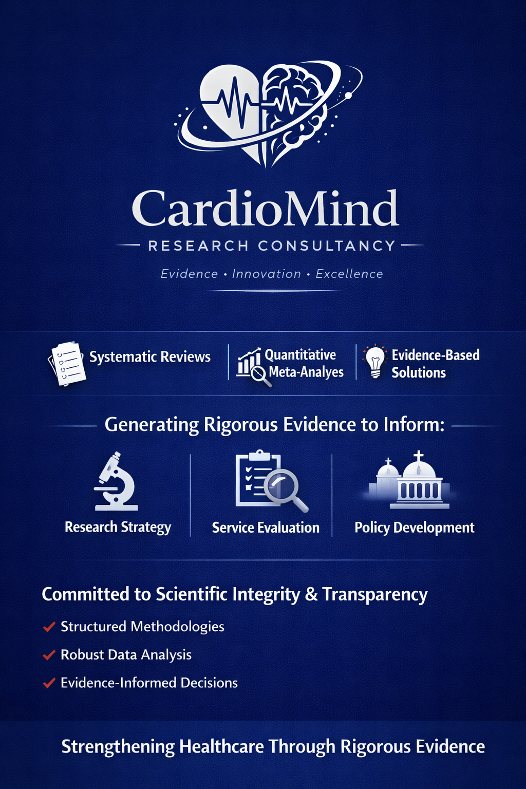 CardioMind Research Consultancy provides rigorous evidence synthesis, systematic reviews, meta-analyses, and healthcare service evaluations to support research, policy development, and evidence-informed decision-making.